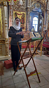 Богослужение возглавил иерей Игорь Шиляев - настоятель храма в честь Феодоровской иконы Божией Матери г. Киров (Вятская епархия), руководитель и духовник Вятской общины глухих и слабослышащих людей во имя святой царицы Елены, дипломированный специалист – сурдопереводчик, преподаватель проходившего с 25 по 31 января 2021 года на территории Спасо - Преображенского Воротынского женского монастыря второго модуля курсов для священнослужителей и мирян по программе «Технология перевода на русский жестовый язык».