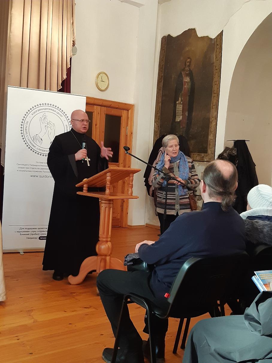 Далее в рамках общецерковного международного церковно-государственного форума Рождественских чтений в храме Тихвинской иконы Божией Матери была проведена секция «Православное наследие милосердия сегодня: интеграция глухих людей в приходскую жизнь».