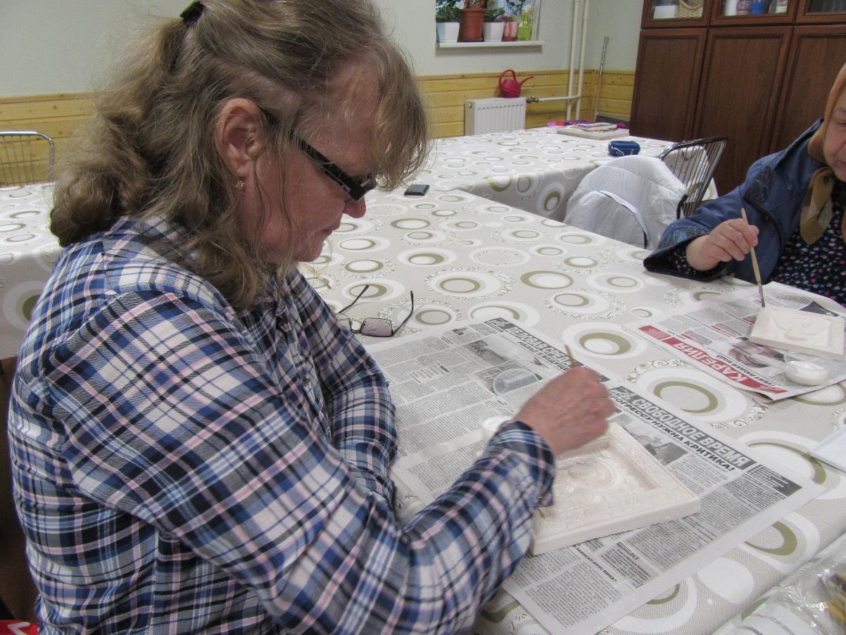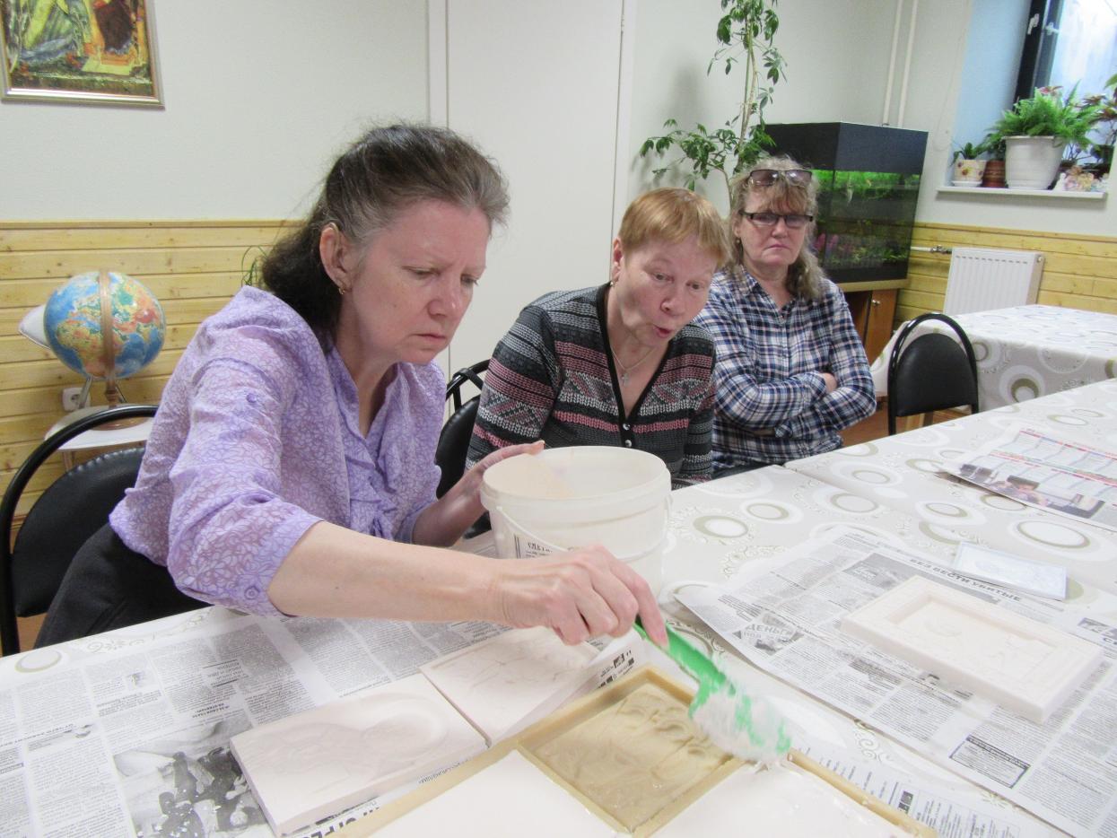 Его участники отливали из гипса специальные рельефные иконы, доступные для тактильного восприятия слепых и слепоглухих людей. Эти иконы делаются при храме уже несколько лет. Волонтеры отливают их в специальные формы, покрывают лаком, а после освящения дарят людям, имеющим нарушения зрения.В этот раз при создании таких икон впервые присутствовали инвалиды по слуху, которые с большим энтузиазмом отнеслись к идее помочь тем, кто не может увидеть икону. Вместе с приходскими волонтерами и сурдопереводчиками они самостоятельно сделали несколько икон: Пресвятой Троицы, Богородицы, Сергия Радонежского, Николая Чудотворца, а также покровителя храма - великомученика и целителя Пантелеимона.