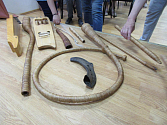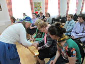 Экскурсия продолжилась небольшой прогулкой по памятным местам Пряжи, а после состоялась интерактивная программа, посвященная традиционным карельским инструментам в Национальной школе искусств. В ходе программы все участники смогли не только узнать о традиционных инструментах, но и подержать их в руках, попробовать сыграть на них и сфотографироваться. Большое впечатление это произвело на неслышащих паломников, которые смогли сами дотронуться до струн кантеле, почувствовать вибрацию «карельской скрипки» йоухикко, подержать в руках берестяные флейты, подуть в пастуший рожок, сделанный из настоящего коровьего рога. Музыкальные инструменты вызвали интерес и у слабовидящих участников программы – несколько человек имели опыт игры на кантеле, но с удовольствием посмотрели и попробовали использовать другие инструменты.