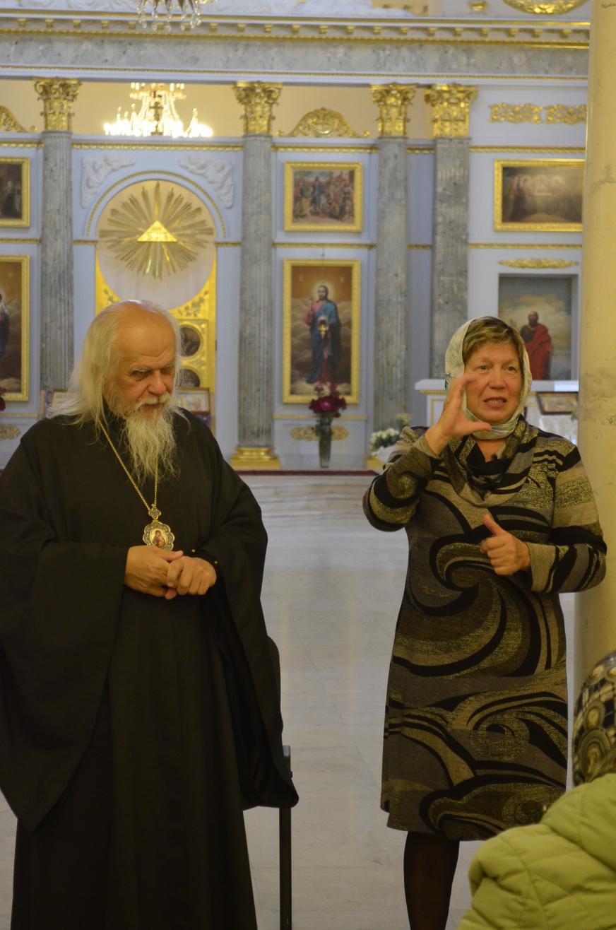 После Литургии состоялся круглый стол, на котором председатель Синодального отдела по благотворительности побеседовал с представителями православных общин глухих.